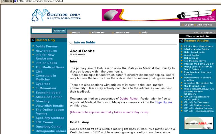 The primary aim of Dobbs is to allow the Malaysian Medical Community to discuss issues within the community.
